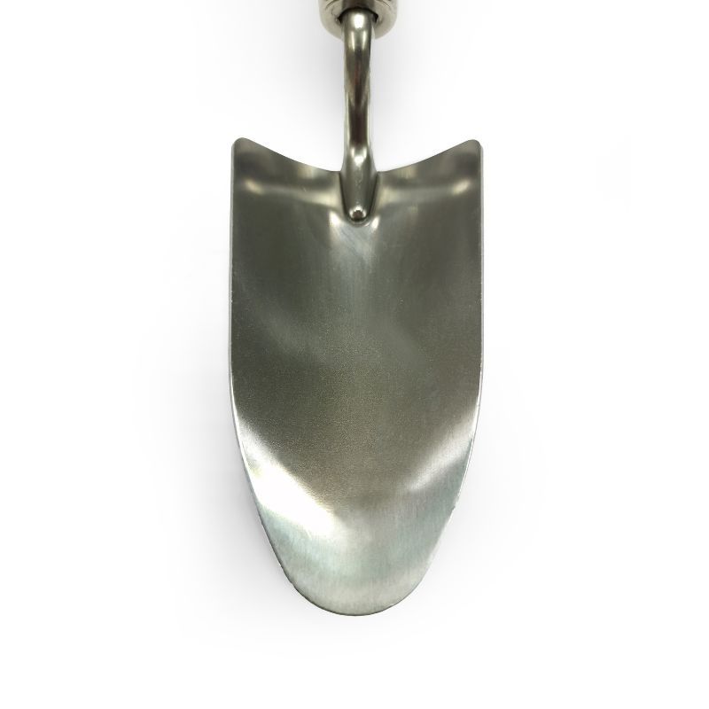 The head is forged from high-carbon stainless steel, combining superior strength with excellent resistance to rust and corrosion. Its polished, dish-shaped design allows you to scoop and move soil efficiently while the sharpened edges make light work of digging into compacted ground. This ensures effortless planting and potting, even in challenging soil conditions.